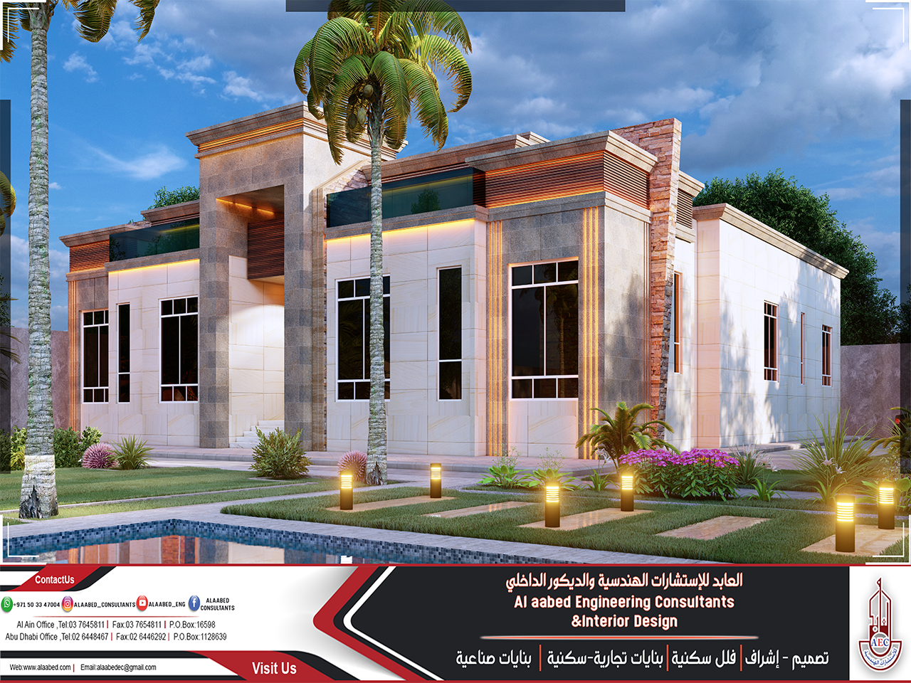 We have studied and implemented hundreds of distinguished engineering projects all over the Emirate of Abu Dhabi, with an integrated team, distinguished management and complete satisfaction of project owners. Our projects vary between residential, religious, commercial, industrial and interior design buildings.